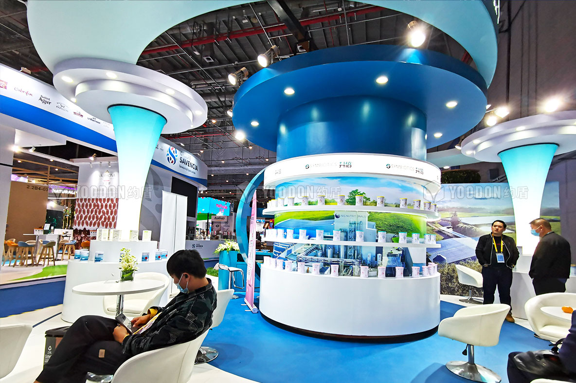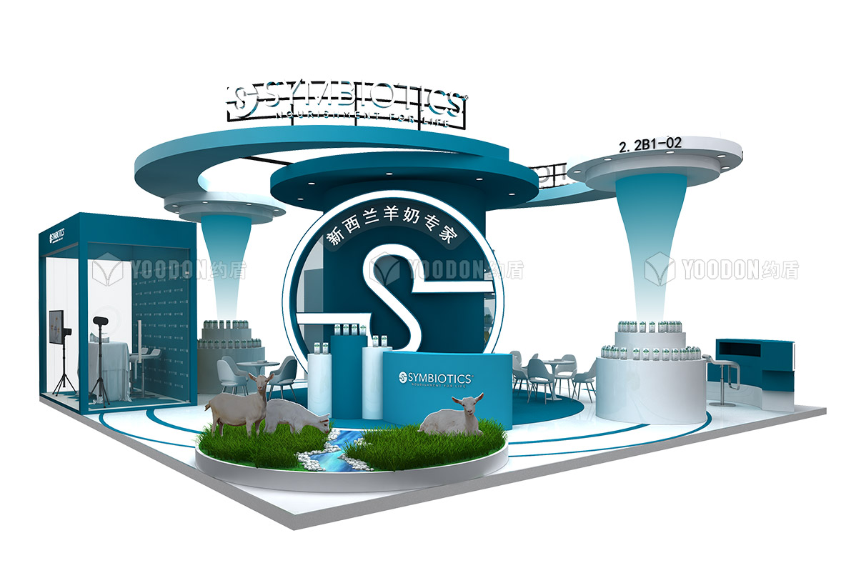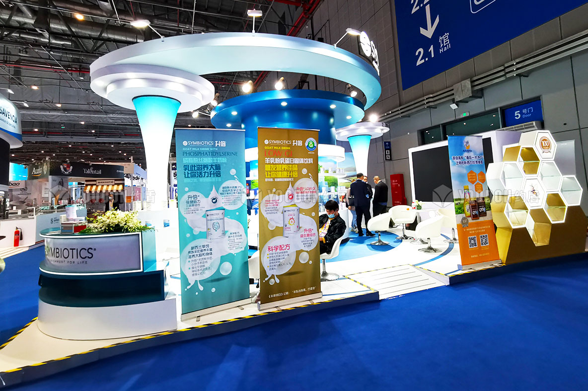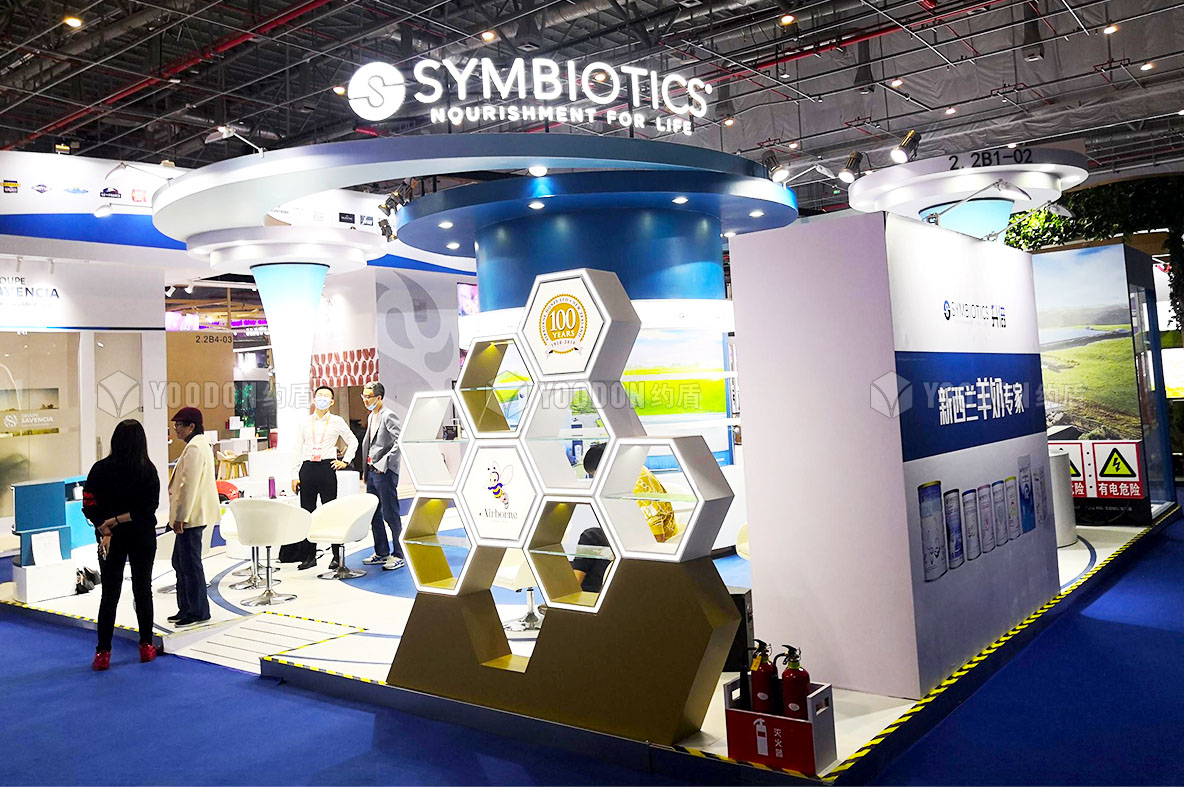 升倍主打產品為羊奶,輔助產品為蜂蜜,為了將蜂蜜也展現在大家視線中,特地設計搭建了一個蜂窩造型的展示柜。
