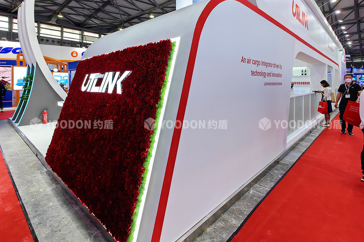 展位從不同角度都通透明亮,非常吸睛,多處LED大屏幕、柔性燈帶冰屏使用,讓展臺動感起來,玫瑰花展臺的設(shè)計(jì)更是新穎之處,擴(kuò)大視覺的同時大氣渲染了寰宇通達(dá)的國際品牌形象,聚擾眼球,給參展觀眾帶來不一樣的視覺盛宴。