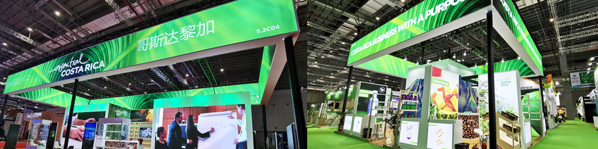 通過以上3點的視覺和模塊化的組合設(shè)計,達(dá)到 形象統(tǒng)一 識別性強 組合性強,成功為哥斯達(dá)黎加在2019年中國國際進口博覽會上打造了統(tǒng)一的品牌形象。