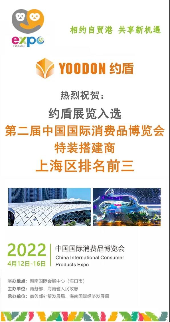 約盾展覽憑借著15年的全球運營經驗,入選“2022年中國國際消費品博覽會”特裝搭建商,上海區排名第三。約盾將會用專業的設計搭建團隊,為客戶帶來蕞優的體驗。